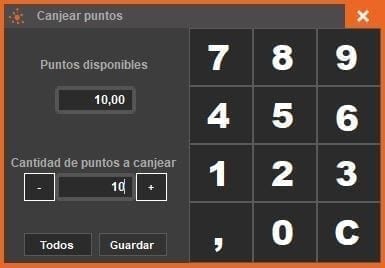 Si estamos de acuerdo con su utilización nos aparecerá una ventana en la que designaremos cuantos de los puntos del cliente vamos a utilizar en su compra.