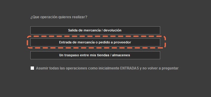 Como en el anterior workflow, en el mini-asistente inicial, selecciona “pedidos a proveedor o entrada de mercancía” y luego opera como si fueras a pedir al proveedor. Cuando finalices, activa el check “ejecutar ahora” y guarda la operación y ésta añadirá el stock a tu tienda / almacén de destino (el que hayas seleccionado para la gestión)