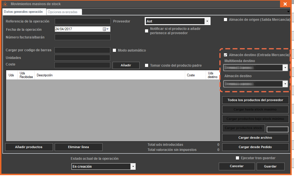 Es muy importante saber que la operación solo finalizará si marcas la casilla “ejecutar tras guardar”, esto hará que se ejecuten las operaciones de movimientos. El hecho de seleccionar el estado “finalizado” en la lista desplegable, NO FINALIZA la operación.
